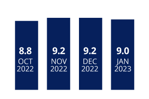 Below are the top key industry financial indicators (as of February 2023) to get an overview of the most current construction finance industry trends. Click on the title to read the detailed report for each KPI.